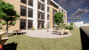 The Oakwood Project will host 90 housing units. 30 units will be designated for women-led families, with multiple bedrooms, while 60 units will be designated for single women. Oakwood will act as a respite for residents for 1-2 years after experiencing violence, or having spent time in encampments, where they can rebuild their confidence, skills and receive support to live fulfilling lives.