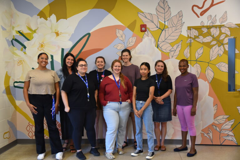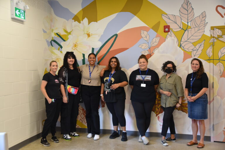 The new space, which formerly housed YWCA Hamilton’s pool, includes 25 private bed areas where those accessing our programs can sleep in safety and security, expanded laundry and shower facilities, increased storage, and a large-scale mural by local artist Kayla Whitney.